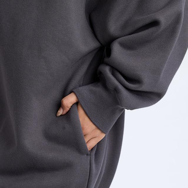 ふんわりと体を包み込む、厚手でボリュームのある裏起毛素材を使用。寒い季節もこれ一枚で安心の温もりを提供します。