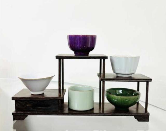 中国の宋時代の陶磁器は「宋磁」と呼ばれ、古陶磁器・古美術品の歴史において必ず語られるほど重要です。宋代は中国陶磁器史における一つの頂点とされています。その中でも「五大名窯」と称される官窯(かんよう)、定窯(ていよう)、汝窯(じょよう)、哥窯(かよう)、鈞窯(きんよう)は、それぞれの独自の技法や美的特色を持ち、中国陶磁器の歴史において重要な地位を占めていて現代でも高く評価されています。この茶器セットは、故宮博物院に収蔵されている五大名窯の器を参考にしており、古代の形状と色彩を厳選し、宋代陶磁器の風雅を表現しています。■飾り棚■鶏翅木(けいそうぼく)は、木目が鶏の羽の形に似ていることか名付けられたそうで、中国茶道具では定番の素材の一つです。非常に強く、歪みがなく、湿度による割れや歪みも極めて少なく、長く使用可能。