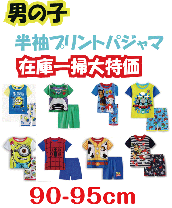 男の子 半袖パジャマ 在庫一掃大特価 ¥1,000 パウパトロール スパイダーマン カーズetc 90cm-95cm 綿100% 即日発送!