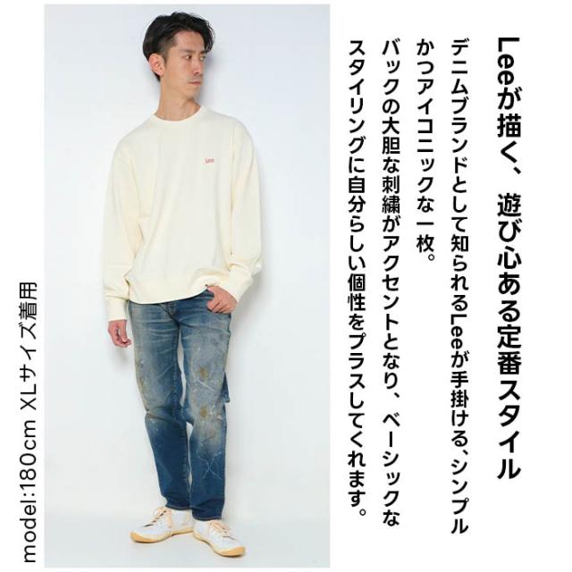 LEE LT3218 スウェット トレーナー 裏毛 裏起毛 ロゴ 刺繍 バックプリント バックロゴ クルーネック 長袖 メンズ レディース ユニセックス 大きめ ゆったり オーバーサイズ カジュアル ストリート ブランド Leeスウェット Leeトレーナー Leeロゴ 刺繍スウェット 刺繍トレーナー 秋服 冬服 春服 おしゃれ 人気 定番 お揃い オソロ カップル