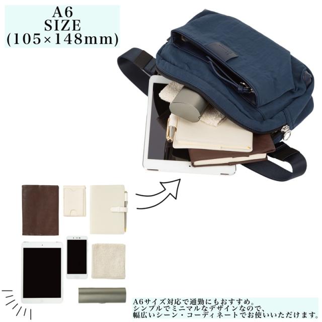 容量約5L、メインルームに一般的なA6(105mm×148mm)サイズが収納可能。