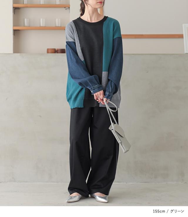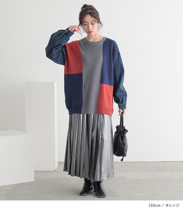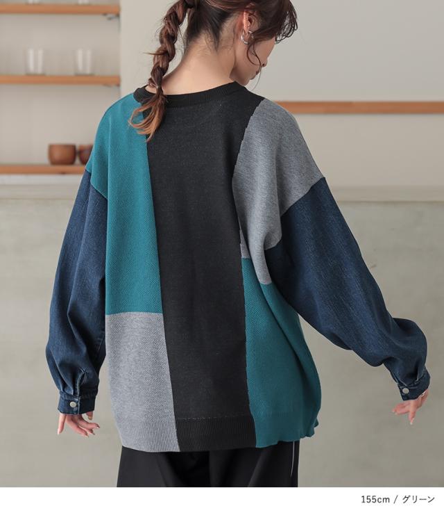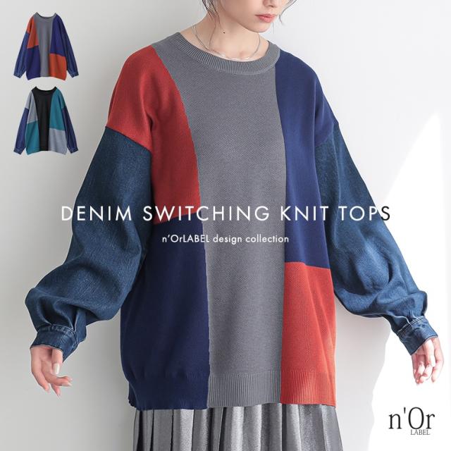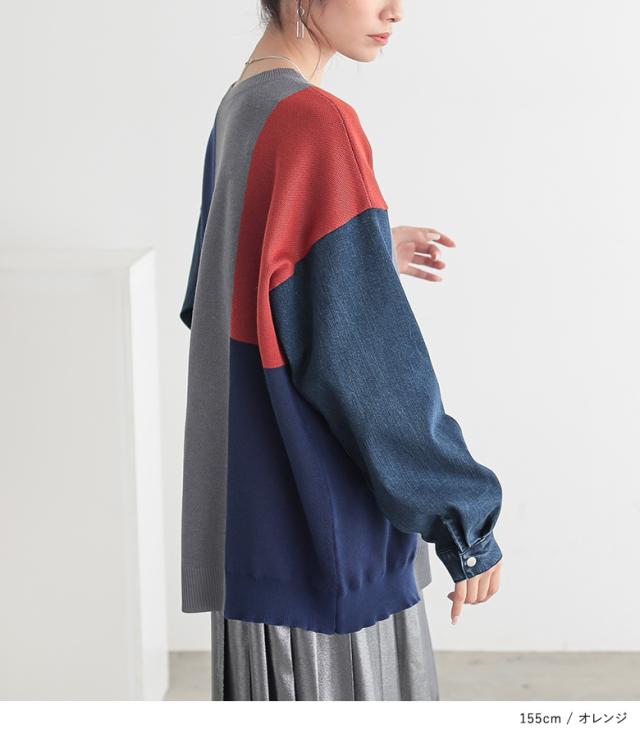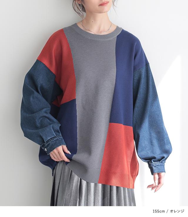 ニット 長袖 レディース トップス セーター デニム袖 切り替え 配色 ジャカード ジャガード クルーネック ゆったり 秋 冬 【TP】 プルオーバー ざっくりニット n'OrLABEL ノア—ルレーベル 大人女子 大人可愛い お洒落可愛い 大人カジュアル ベーシック ニュアンス ラフ エフォートレス オフィスカジュアル 上品 きれいめ ナチュラル チュニック丈ニット ミディ丈 ミドル丈 チュニック丈 無地 異素材MIX ドッキング レイヤード 重ね着 おうちで洗える 伸縮性 カジュアル シンプル モード マニッシュ キレカジ フェミニン ゆる 楽ちん お尻が隠れる Sサイズ Mサイズ Lサイズ LLサイズ 3Lサイズ XLサイズ フリーサイズ ぽっちゃり 体型カバー 大きいサイズ プラスサイズ 10代 20代 30代 40代 50代 60代 低身長 高身長 女子会 オフィス 通勤 通学 お買い物 お出掛け 旅行 リゾート レジャー おしゃれ お洒落 トレンド 流行 osharewalker オシャレウォーカー おしゃれうぉーかー オレンジ グリーン 緑 マルチカラー ミックスカラー[ID]13to0ga