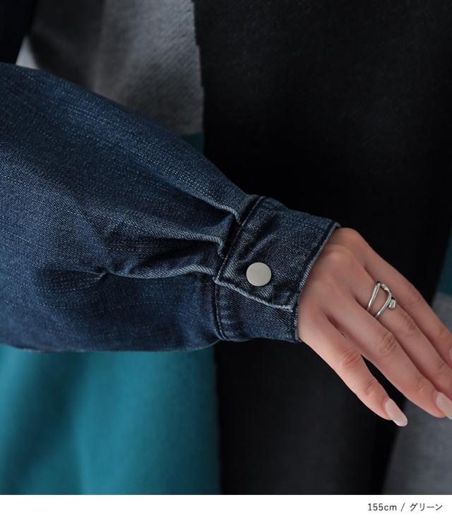 | staff:T/159cm B77 W58 H91 【普段着用】 Tops:S/M Bottoms: M/L | 【フリーサイズ】 袖丈:手の甲真ん中位 着丈:ヒップ真ん中位 腕周り:ゆったり バスト:ゆったり 全体:ゆったり 袖がデニムになっているデザインが個性的で素敵です。 |