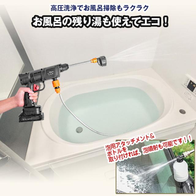 新型コードレス式 高圧洗浄機 プラス コードレス 充電式 家庭用 屋外清掃 洗車 ベランダ掃除 外壁掃除 強力噴射 持ち運び コンパクト