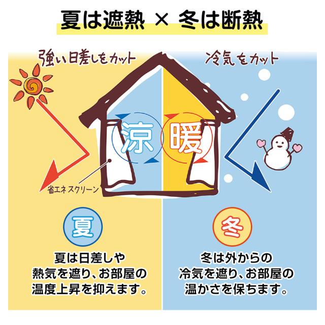 省エネスクリーン ショート 2枚入 遮熱 断熱 節電 日差し対策 遮光 UVカット 冷房効率 暖房効率 簡単取付 サイズ調整