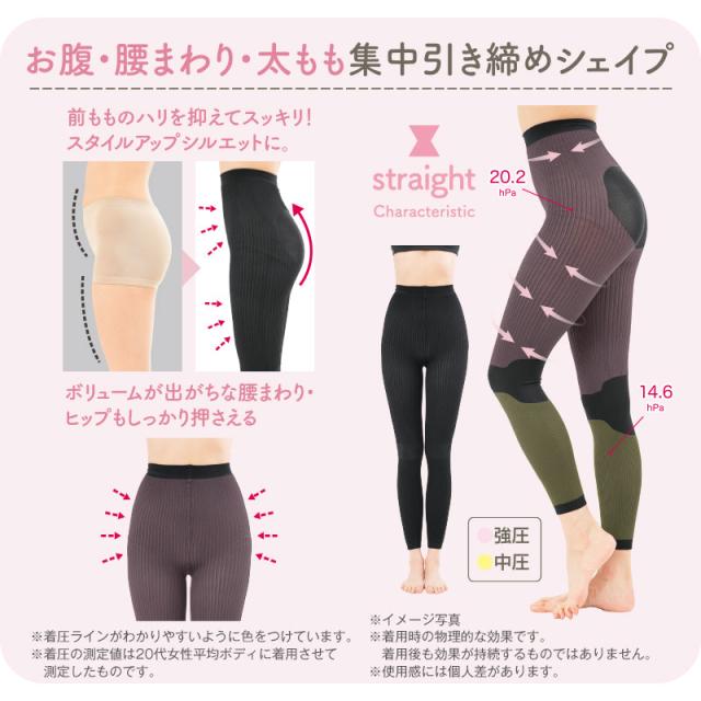 | 使用上のご注意 | ●医療目的にご使用しないでください。●締め過ぎと感じる場合は適度な着脱を繰り返してください。●部分的に締め付けが強くなるおそれがありますので、着用後はできるだけシワをのばしてください。●着圧機能のついた製品との併用は危険ですのでおやめください。●最初は短時間の着用から開始して、徐々に着用時間を延ばすようにしてください。●使用感には個人差があります。●お肌に合わない場合や、かぶれ・かゆみ等を感じた場合はご使用をおやめください。●現在、病気やけがなどによるむくみやだるさを感じる方、血圧の高い方、心臓・腎臓などに障害のある方、かゆみや発疹を起こしている方、血行障害を起こしたことがある方、その他体に異常を感じる方は本品着用に関して事前に医師にご相談ください。●ご使用中、またはご使用後に異常を感じた場合はすぐにご使用をおやめください。●妊娠中の方や妊娠の可能性のある方はご使用しないでください。●サイズが合わない場合は無理に着用しないでください。●同じ姿勢を長時間続けると締め付けの強い部分ができてしまいますので、適度な着脱を繰り返してください。●生地部分に爪を立て、無理に引っ張ると破れるおそれがあります。着脱の際はご注意ください。●就寝時はご使用しないでください。●乳幼児の手の届かない場所に保管してください。●火気のそばや高温多湿な場所、直射日光の当たる場所には保管しないでください。●本来の目的以外でのご使用はおやめください。●本品の仕様やデザインは予告なく変更する場合があります。●印刷の都合上、実際の商品と多少色が異なる場合があります。洗濯時はネットを使用してください |