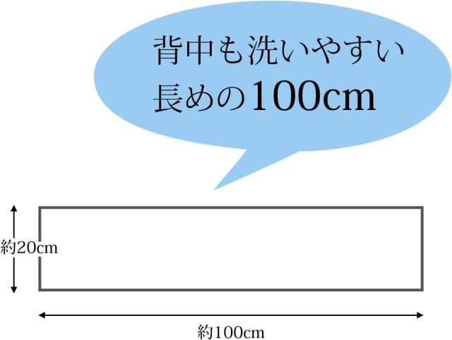 背中まで洗いやすい20×100cmロングサイズで快適なバスタイム。