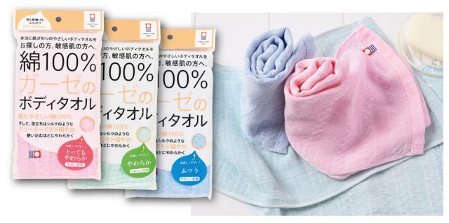 敏感肌にやさしい綿100%、安心の日本製ボディタオル。