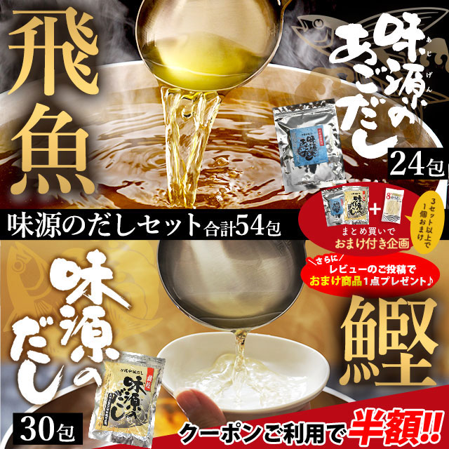 こちらのページは【味源のだし30包と味源のあごだし24包】の2種類セットをお求めいただけます。