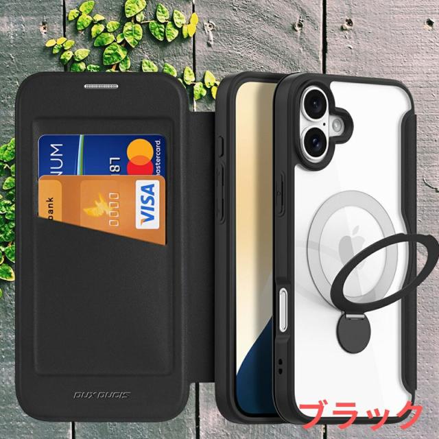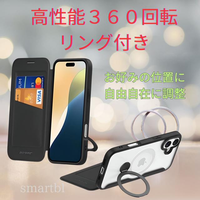 手帳型 iphone17 17Air 17pro max iphone16 ケース 16pro max 16plus 回転 リング付き スマホケース スタンド機能 puレザー ワイヤレス充電対応 耐衝撃 軽量 レンズ保護 背面クリア フルカバーケース カード収納 MagSafe対応