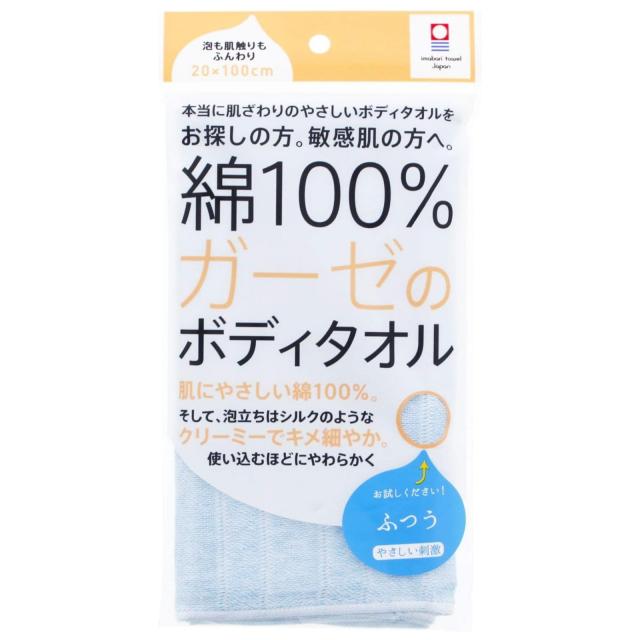 【今治タオルブランド認定】ガーゼ ボディタオル 綿100% 日本製 20×100cm 泡立ち クリーミー 敏感肌にやさしい ブルー ふつう やさしい刺激