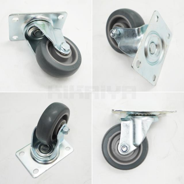 自在キャスター TPR車輪 4個セット 75mm 取付穴ピッチ74×44mm ノーパンクタイヤ DIY 台車 キャスター KIKAIYA