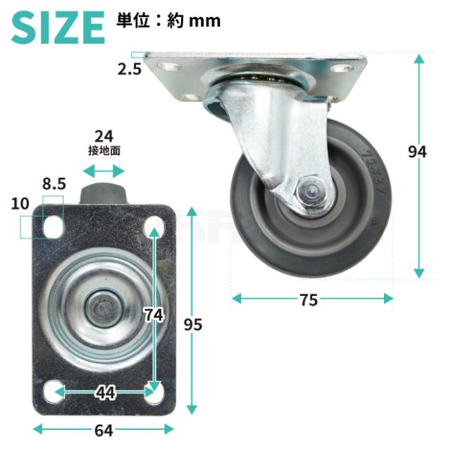 | キャスターサイズ | φ75×幅27mm(接地面24mm) |