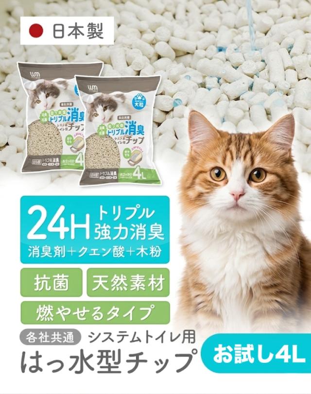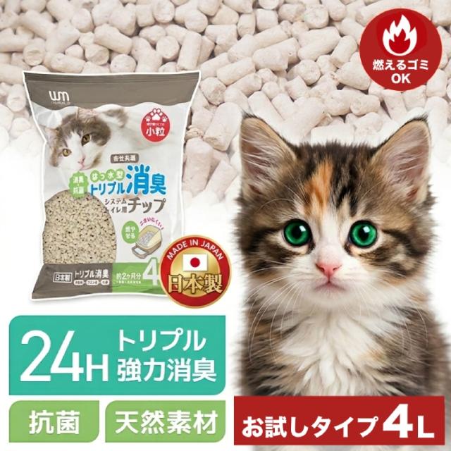 猫砂 システムトイレ用 4L お試し 日本製 トリプル強力消臭 天然素材 自然由来 安全 安心 木粉 クエン酸 消臭 抗菌 脱臭 燃える 可燃ゴミ 軽量 猫砂システムトイレ用 まとめ買い 猫トイレ 砂 ニオイ におい 匂わない 飛び散り防止 おすすめ 送料無料