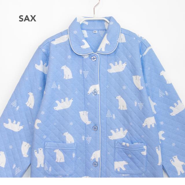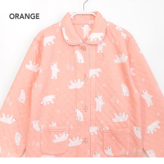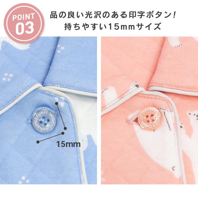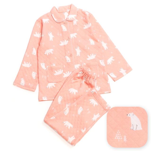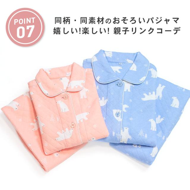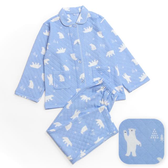 パジャマ キッズ 女の子 内側が綿100% 長袖 冬 ふんわり柔らかなニットキルト 前開き ボタン シャツ シロクマ柄 サックス オレンジ 120 130 140 150 160 子供 ガールズ ジュニア 親子 おそろい リンクコーデ 81245
