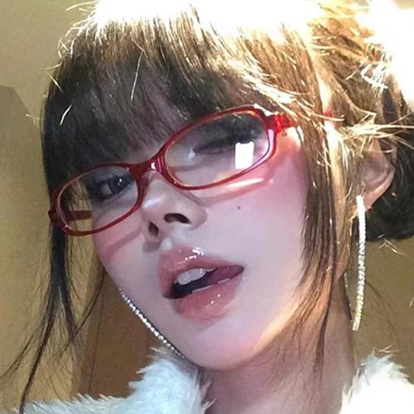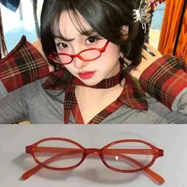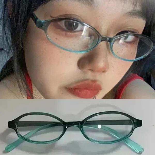 女性用の赤いレトロな楕円形のメガネ、緑のフレーム、女の子用の眼鏡、眼鏡、装飾、アンチブルー、海辺の運転、y2k