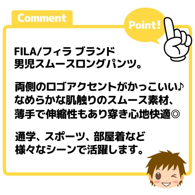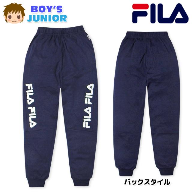 【送料無料】男児 ジュニア スムース ロング パンツ FILA/フィラ 薄手 ロゴ ウエストゴム ドローコード ボトムス 子供服 男の子 140cm 150cm 160cm iw-1424a-nv【メール便対応】