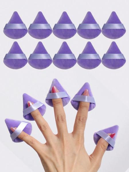 三角形のベルベットパウダーパフ、ソフトメイクアップブレンダースポンジ、顔の輪郭、目と隅用10個。