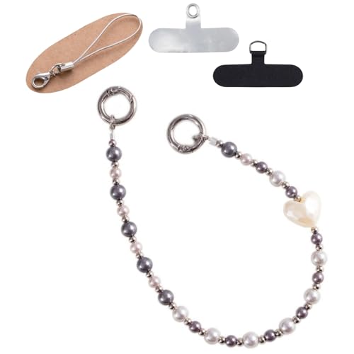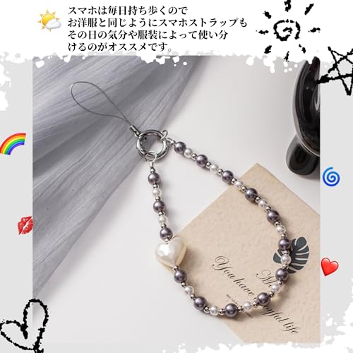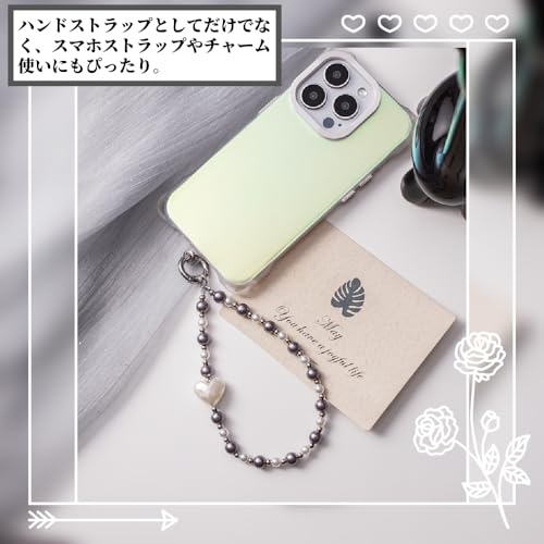 スマホ ハンドストラップ パール チャーム かわいい おしゃれ 落下防止 パールタイプ 携帯ストラップ スマホストラップ 手首 (08.ホワイトハートxシルバー&ホワイトビーズ, ハンドストラップxダブルリング+アタッチメント) 送料無料