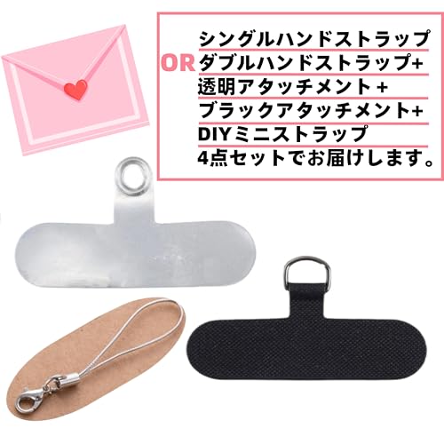 【素材について】 ABS、合金 ハンドストラップ・透明アタッチメント・ブラックアタッチメント・diyミニストラップ4点セットでお届けします。
