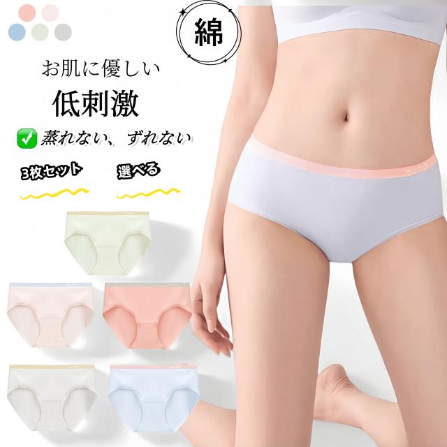 選べる3枚セット 綿 スポーティー コットンショーツ 個別包装 レディース パンツ 無縫製 下着 サラッと 履き心地がいい シンプル スタンダード 締め付けない 肌着 響かない フィット 伸縮