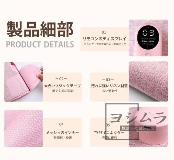【空気圧フットマッサージャー】空気圧マッサージ、赤外線温熱機能が搭載しております。エアバッグを膨らませたりしぼませたりすることで、ふくらはぎの上部と下部を順序に押します。まるで人の手でもみほぐすようなマッサージを実現します