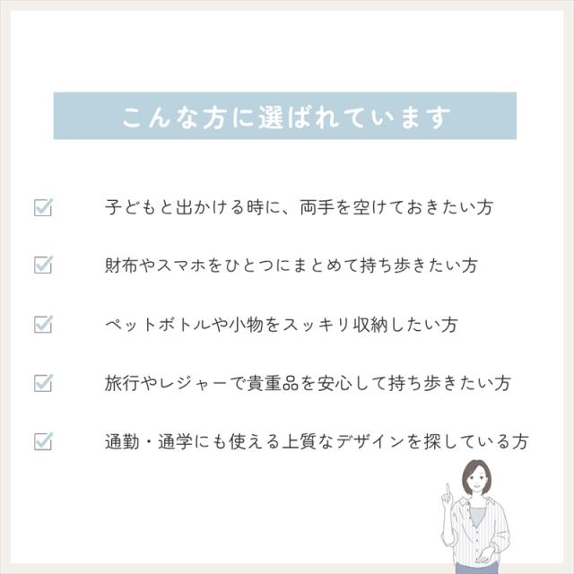 - 旅行・散歩・ショッピング・ライブ・テーマパークなどで両手を空けたい方