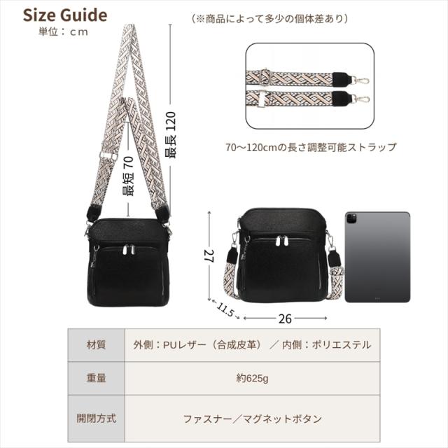 | ストラップ | 調節可能ショルダー(斜めがけ/肩掛け) |
