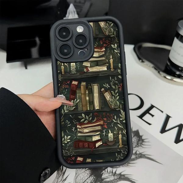 本棚クリエイティブパターンシリコーン電話ケース iPhone 16 プロマックスケース iPhone 15 14 13 12 11 XS 最大 X XR 7 8 プラス 16E カバー