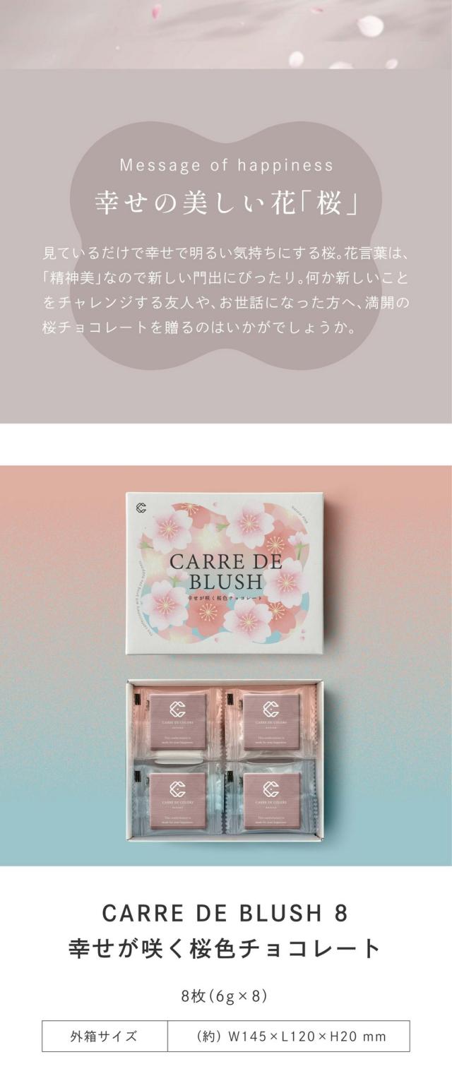 チョコレート 植物油脂不使用 CAREE DE BLUSH 8枚入り 幸せが咲く桜色チョコレート 天然由来色100% 桜葉パウダー使用 合成着色料不使用 ギフト 手土産 バレンタイン ホワイトデー