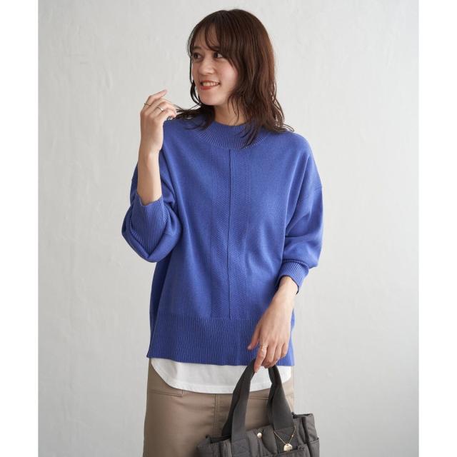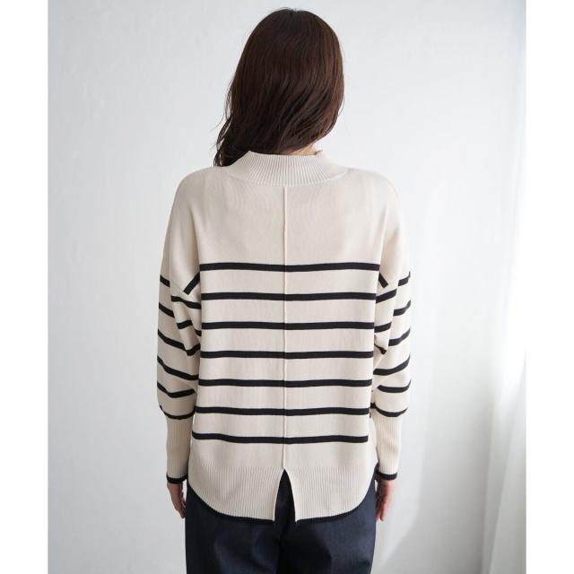 コットン混素材でやわらかな着心地のバックスリットニット。