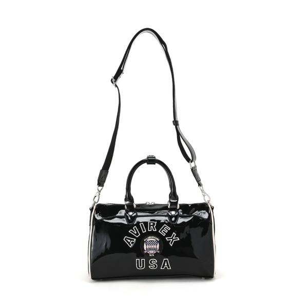 ENAMEL MINI DUFFLE BAG・レザージャケットよりインスパイアされたバーシティーロゴが印象的なミニボストンバッグ・AVIREXロゴ,「ALL AMERICANS 1975」ワッペン刺繍がアクセント・光沢のあるエナメル調素材を使用し、存在感抜群・コンパクトながらもマチが広く、収納力に優れたボストンタイプ・手持ち&ショルダーの2WAY仕様で、シーンに応じた使い方が可能・取り外し・長さ調整可能なショルダーストラップ付き【AVIREX WOMAN】本格的なミリタリーウェアが持つ機能性とデザインをレディースカジュアルに投影したライン。個性的かつ時代性のあるレディースブランドとして聡明、自由、好奇心、凛として快活な働く大人の女性へ向けたレディスカジュアルを提案しています。