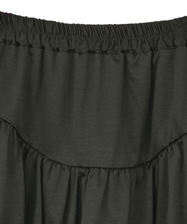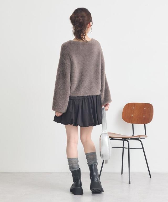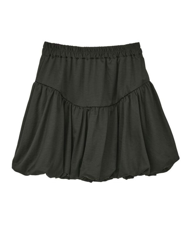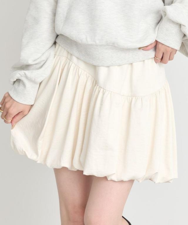光沢あるサテン調生地で仕立てた印象的なスカート。ヘムラインを内側にギャザーリングした人気のバルーンシルエットが魅力です。ラウンド切り替えでよりメリハリのあるフォルムを演出し、ウエスト総ゴム仕様ですっきりとした穿き心地。コンパクトな丈感でブーツスタイルとも相性が良く、トレンド感たっぷりに仕上げてくれる今季おすすめのアイテムです。透け感[なし]