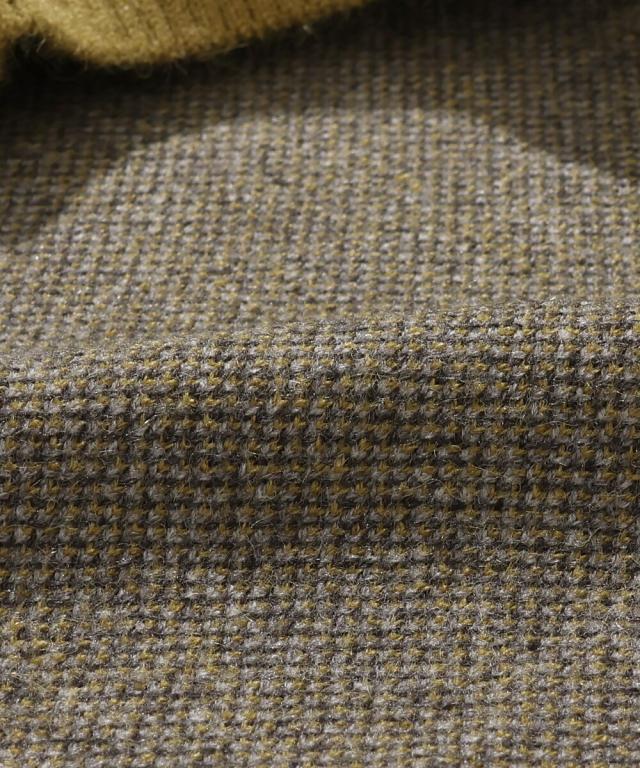 モコモコした編み方が使用された立体感のある柄に、ジャガード特有の糸色がミックスされた生地感で