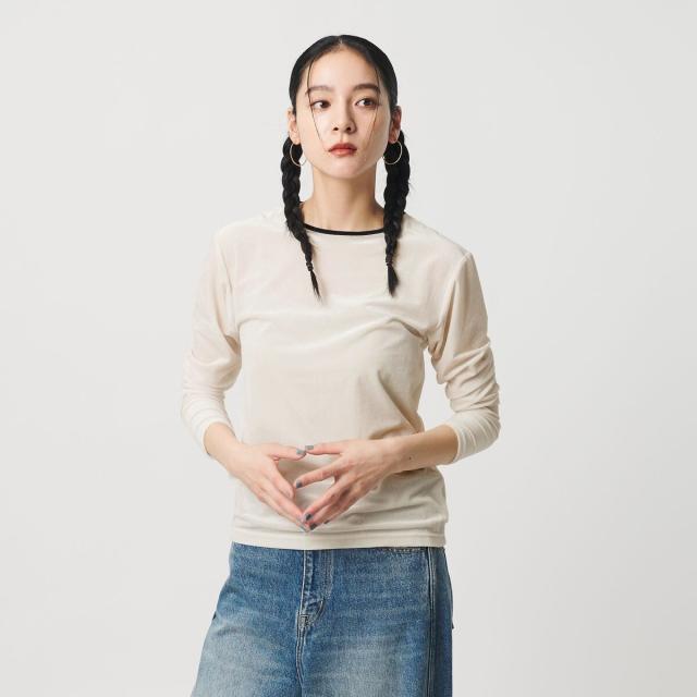 シアーベロア リンガーロングスリーブTシャツ