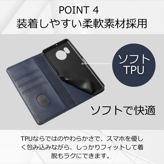 外側は高級感のあるPUレザー、内側は衝撃をやわらげるTPU素材を採用し、大切な端末をしっかり保護します。