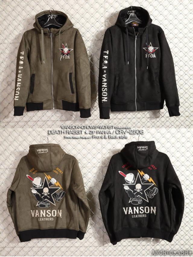 VANSON クローズ WORST デスラビット ZIPパーカー (CRV-2508) 【送料無料】バンソン CROWS ワースト 刺繍 裏ファー起毛ボンディング