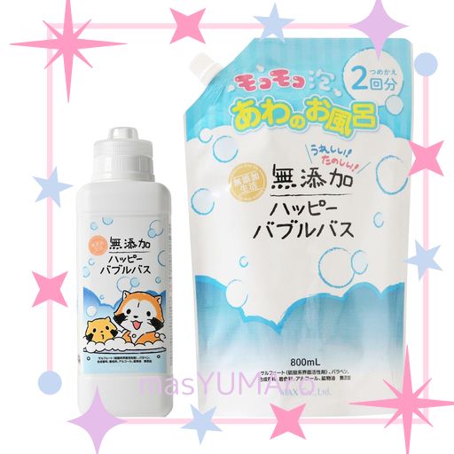【無添加生活 泡入浴剤】ハッピーバブルバス 380ml + 詰め替え800mL 製造国:日本製 [合成香料、着色料、アルコール、パラベン、サルフェート、鉱物油 不使用]