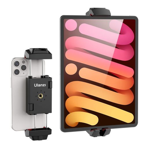 ULANZI タブレットホルダー IPAD三脚用ホルダー スマホ三脚マウント 2.55-12.9インチ対応 IPAD三脚アダプター スマホホルダー コールドシュー付き アタッチメント クリップ 1/4ネジ穴付き IPAD/IPAD