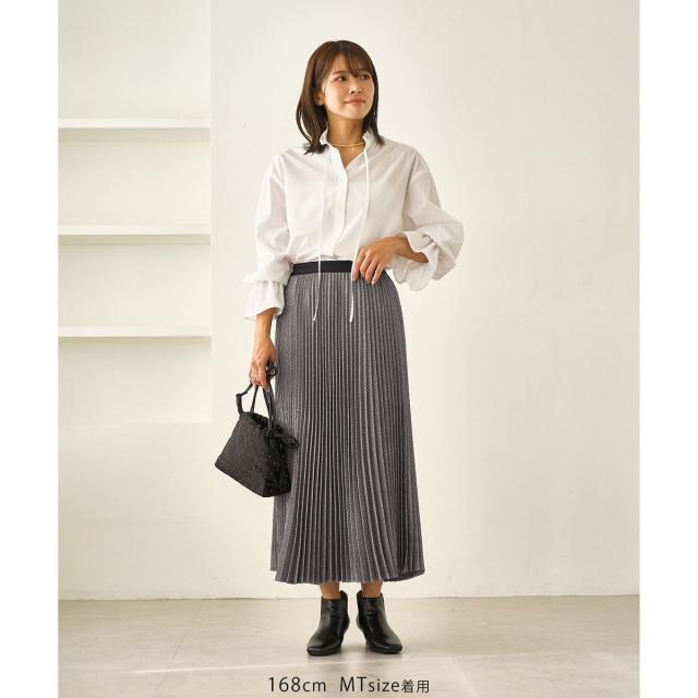 ・プリーツ加工で縦ラインをシャープにみせるシルエット。