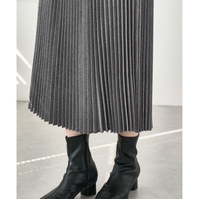 ・ラメ糸を使用したグレンチェック柄の生地にプリーツ加工を施した素材。