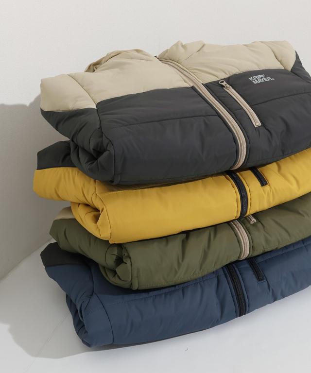 この中綿ジャケットは、「テクノロジーで暖かさを極めたい」をコンセプトに、機能素材を使用しています。