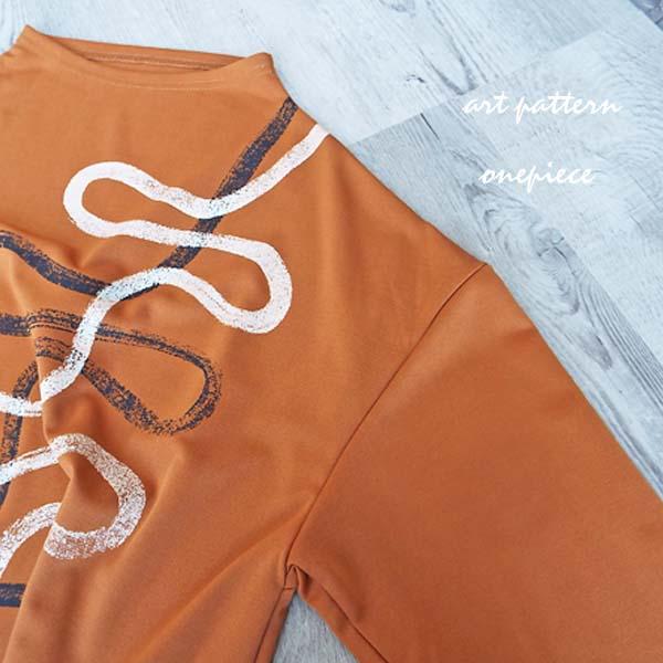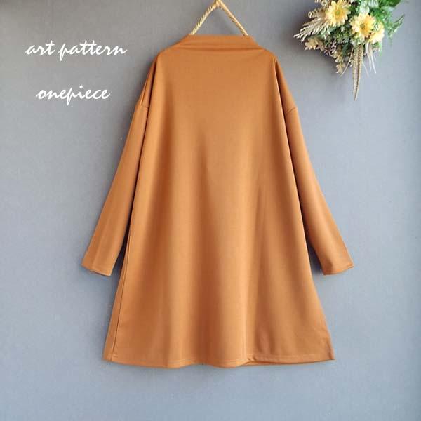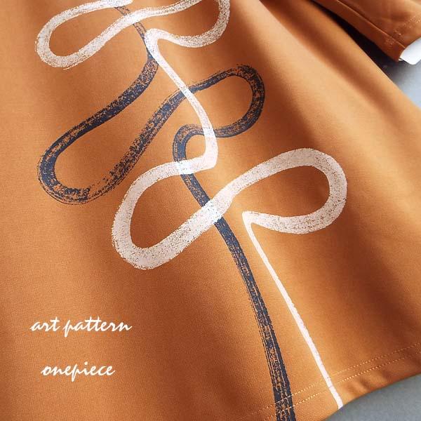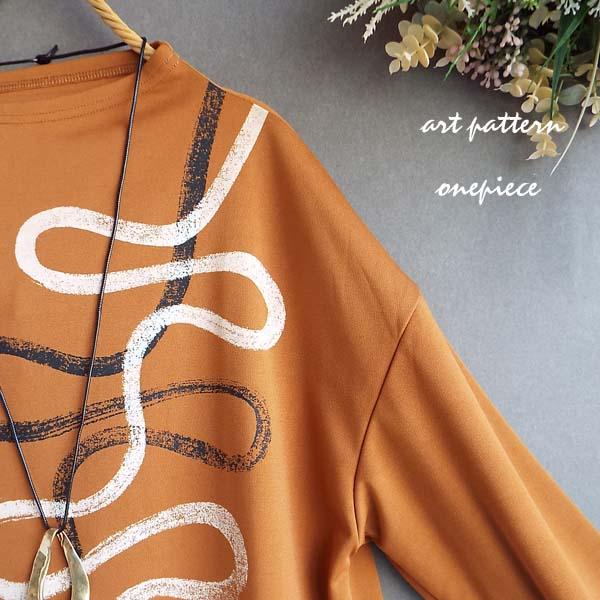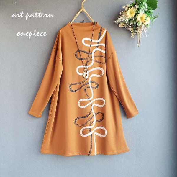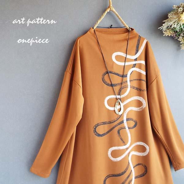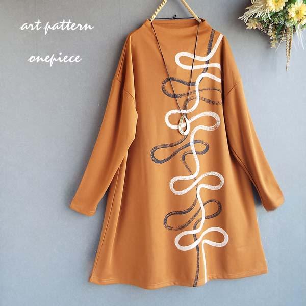 ワンピース レディース くねくねライン プリント ボトルネック 長袖 チュニック 体型カバー ロング 30代 40代 50代 60代 s3912