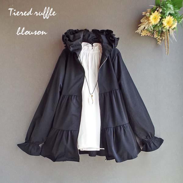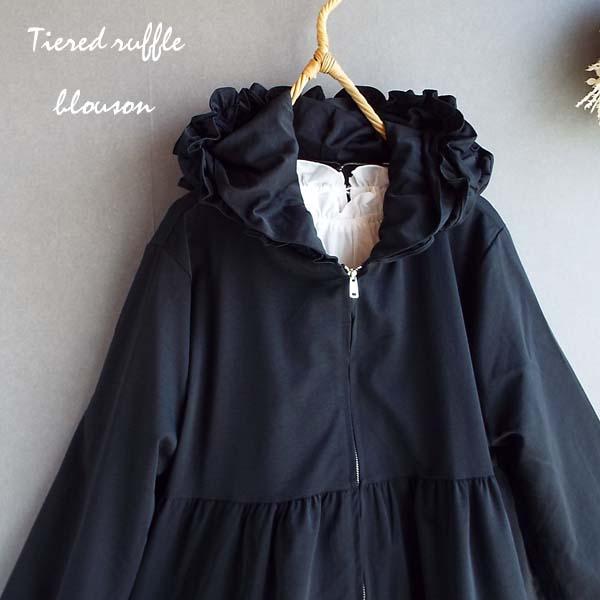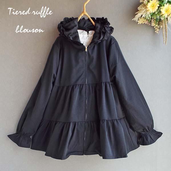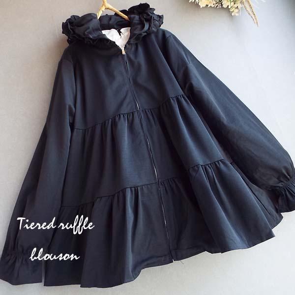 パーカー フリル ブルゾン ティアード アウター 体型カバー ゆったり 40代 50代 s3927