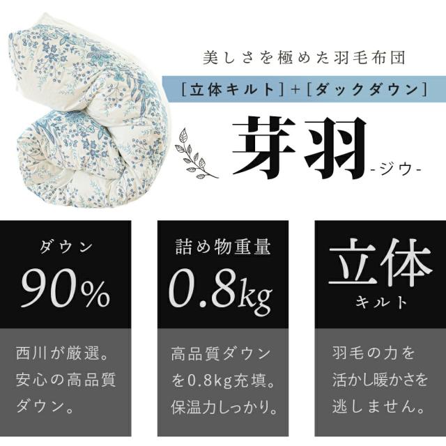 【11/16〜2,000円値下!】西川 羽毛布団 シングル ロング 芽羽 -ジウ- イングランド産 ダウン90% ホワイトダックダウン 0.8kg イギリス産 ダックダウン 合い掛け 掛け布団 合掛け DP360 おしゃれ フロース ロング 秋冬 当社限定品 国産