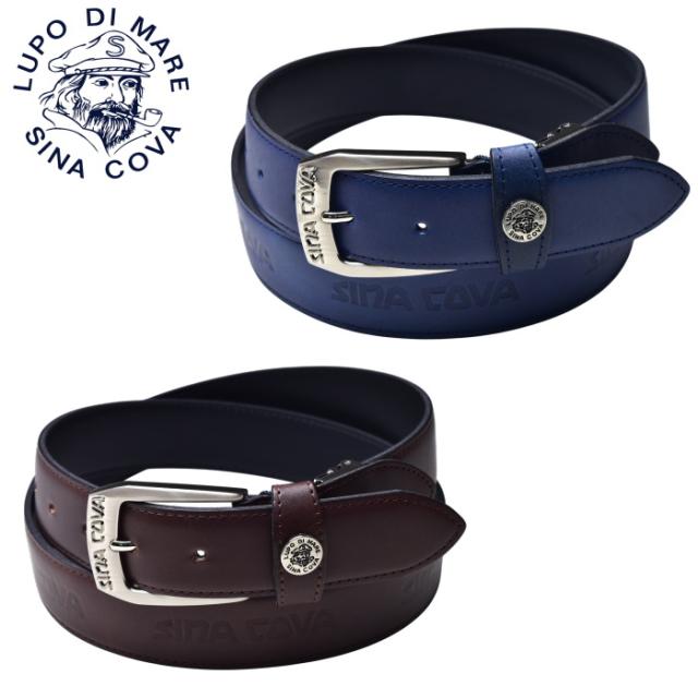 ・「SINA COVA」ロゴ型押しデザインの牛革ベルト。