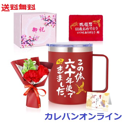 還暦祝い 女性 男性 プレゼント 60歳 誕生日 人気 赤いマグカップ この体60年使ってきました 面白いプレゼント ギフト タオル 取っ手付き