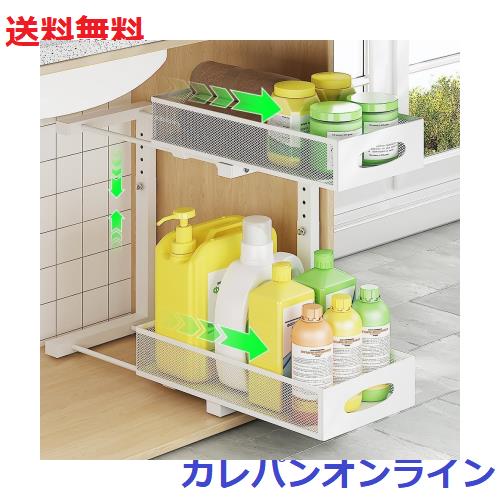 TATIU シンク下 収納 スライド式 シンク下収納ラック 2段 引き出し キッチン収納 洗面台下 洗面所 調味料 収納 金属製 高さ調節可能 大容