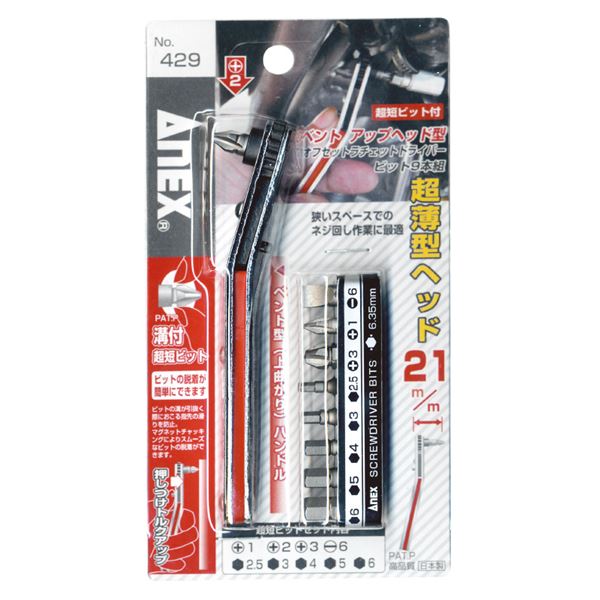 ANEX NO.429 ベントアップ型 オフセットラチェットドライバーセット 工具 作業工具 ツール DIY