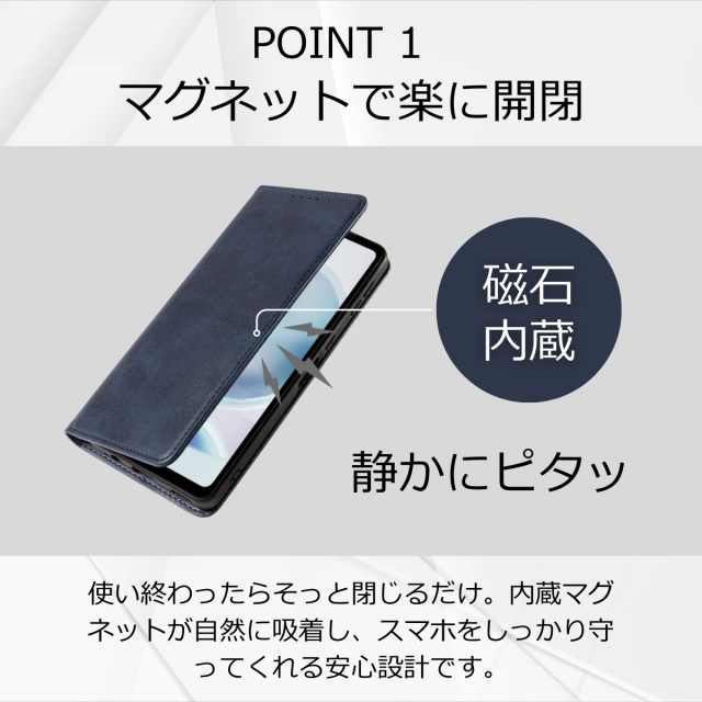 マグネット開閉で使いやすく、横置きスタンドとしても活躍します。